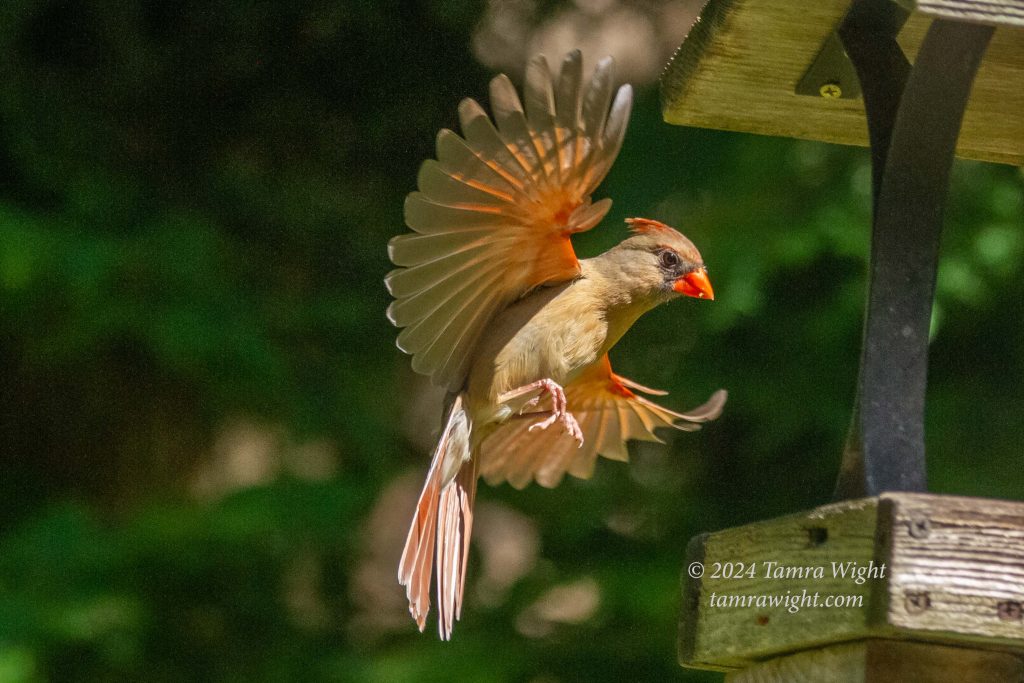 July is the time of year when I get to watch the adult birds bring their young to our feeders. It can be quite comical to watch the little ones try to land on the feeders, or chase their parents around the yard looking to be fed. Once, I watched a male cardinal lead its chick into the middle of the stationary feeder. Instead of eating the seeds at its feet, the young one hollered for food very, very loudly while shaking its wings. If birds could roll their eyes, I'm sure the adult would have!