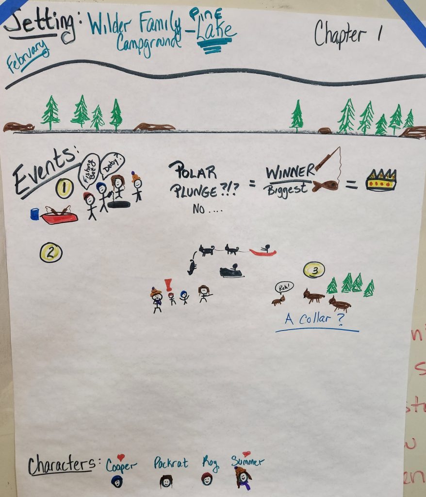 At the beginning of every chapter, students receive this worksheet. We carefully explain that the main rule of doodle notes is to only draw what you hear or read. So if we’re reading about the characters ice fishing, we need to draw what they are seeing, doing, or talking about if it is important to the story. Students can use words, symbols or drawings.